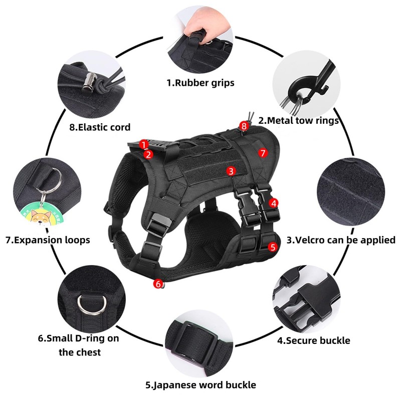 - Harness Material: AppxCaper Tactical Dog Harness with upper and lower layer construction. The stitching is strong and more durable, and the inner layer is a mesh material that is breathable, comfortable and harmless to dogs.