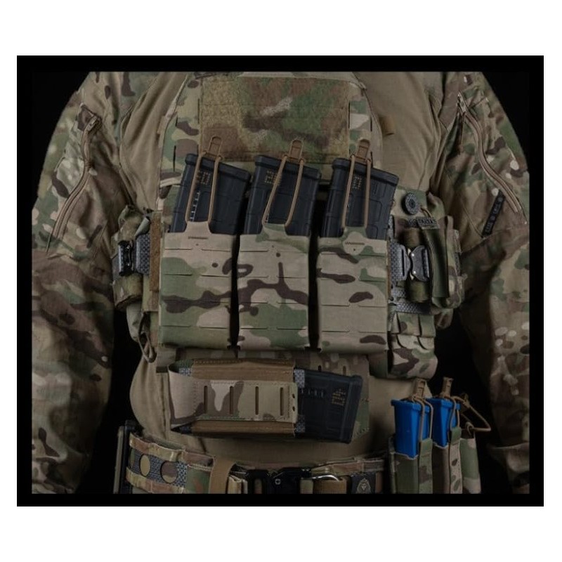 - Multifunctional,Can be mounted vertically or horizontally,underneath a chest rig / tactical vest, or attached under a duty belt,It can also be loaded onto the side of the tactical vest