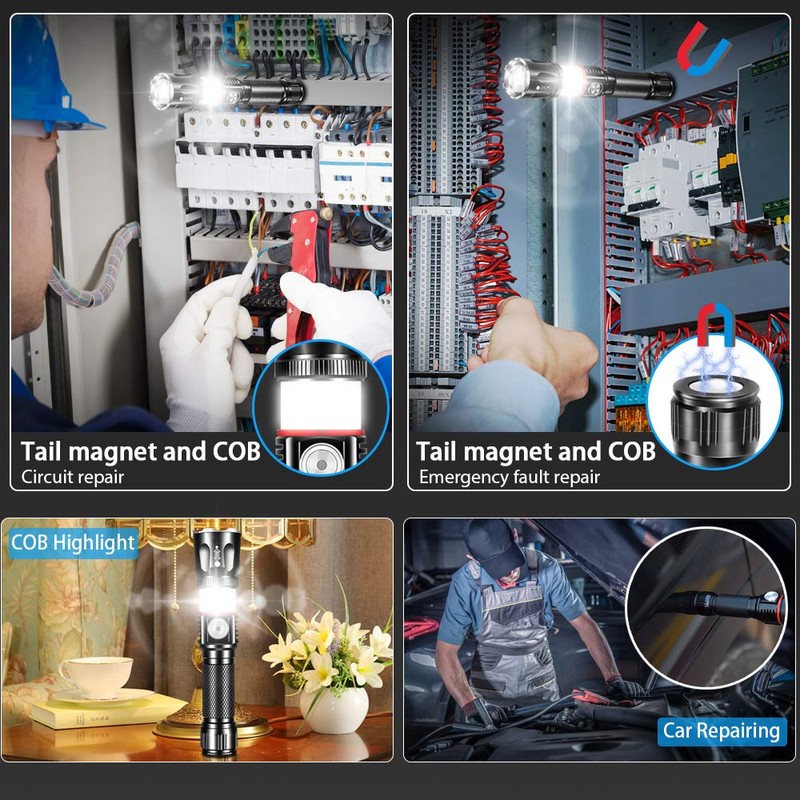 • 【360° COB Light & Strong Magnetic Base】: Compared with the traditional cob flashlight, Vnina Tactical flashlight offer a powerful and bright 360° illumination, combined the strong magnetic base, which allow the led rechargeable flashlight attach to any iron material, Best combination for a led magnetic flashlight, Let your hand totally free.
