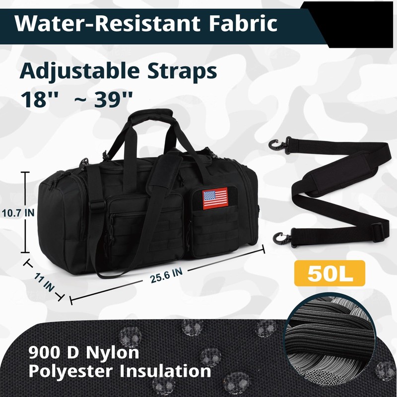 Tactical Gym Bag for Men,50L Large 3 in 1 Sports Duffle Bag with Shoes Compartment for Travel,Water Resistant Travel Backpack Weekender Overnight Bag with Wet Pocket for Women