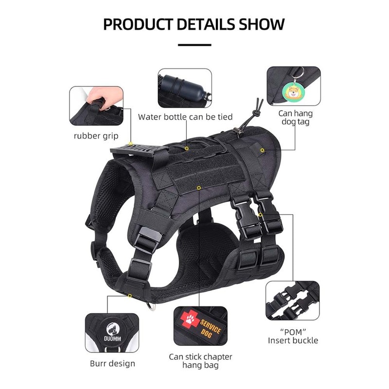 - Heavy-Duty Tactical Dog Harness – Built to Last:Made of military-grade 1000D nylon, this heavy-duty dog harness is designed for durability and strength. Reinforced stitching ensures long-lasting performance, while the soft padded inner layer offers comfort and prevents skin irritation. This tactical vest for dogs is ideal for service dogs, working dogs, K9 units, and outdoor adventures.