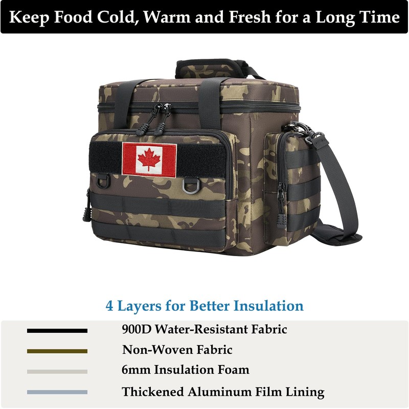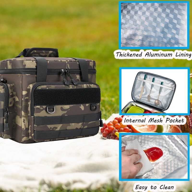 Tactical Lunch Bag for Men, Large Leakproof Insulated Lunch Box, Lunch Cooler Bag with Shoulder Strap, Lunch Pail for Adults Work Outdoor Picnic Trips, Black Camo