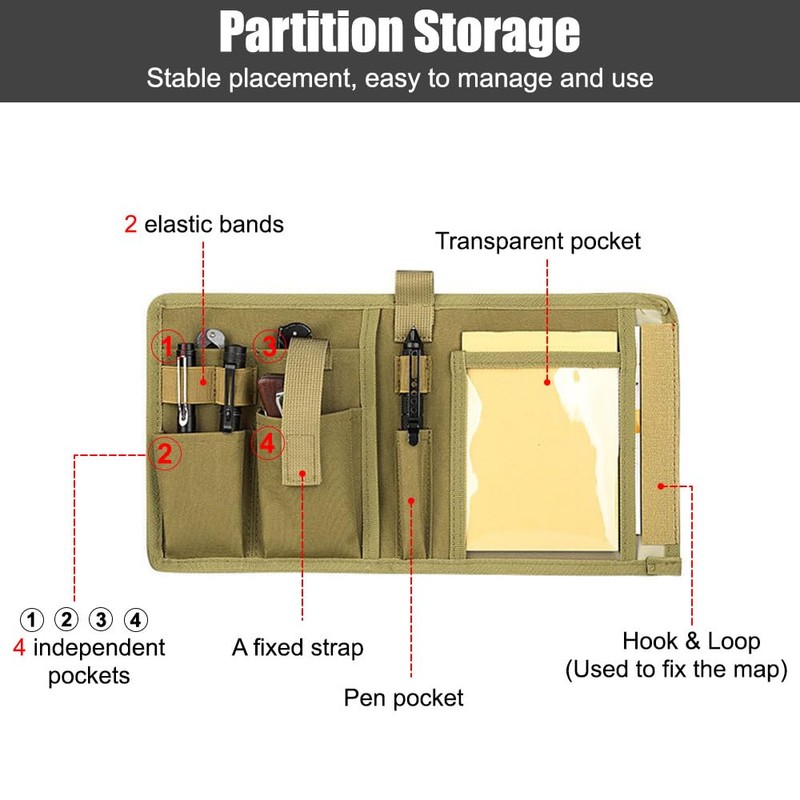 - 【Intelligent Partition】: The interior of the bag is designed as a tri-folding structure, with 4 independent pockets on the left side, equipped with 2 elastic straps and 1 fixed strap for storing gadgets; the center has a pen pocket and a transparent pocket; and the right side is a map bag area, which is convenient for categorization and quick access.