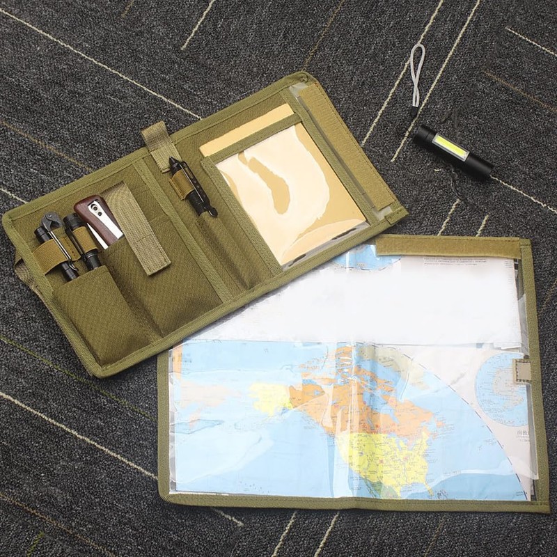Tactical Map Case, Foldable Map Storage Bag Waterproof Map Cover with Multi-Pocket for Camping, Hiking, Trekking, Cycling