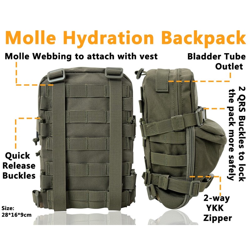Tactical MOLLE Hydration Pack for 2L Hydration Water Bladder 500D Lightweight Nylon Hydration Pack for Hiking Running Biking and Climbing (Ranger Green)