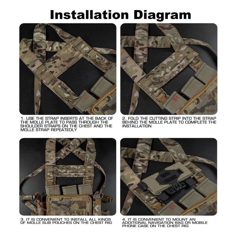 - Ease of attachment/detachment from vest,It is convenient to install all kinds of MOLLE size sub-bags for the chest hanging