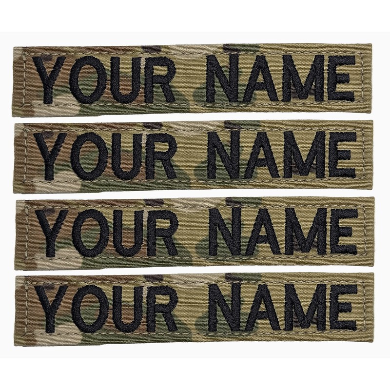 - Professionally Embroidered with 3/4" block letters in Black Thread on Multicam OCP Scorpion material.
