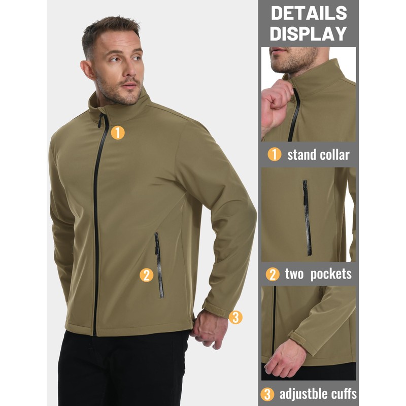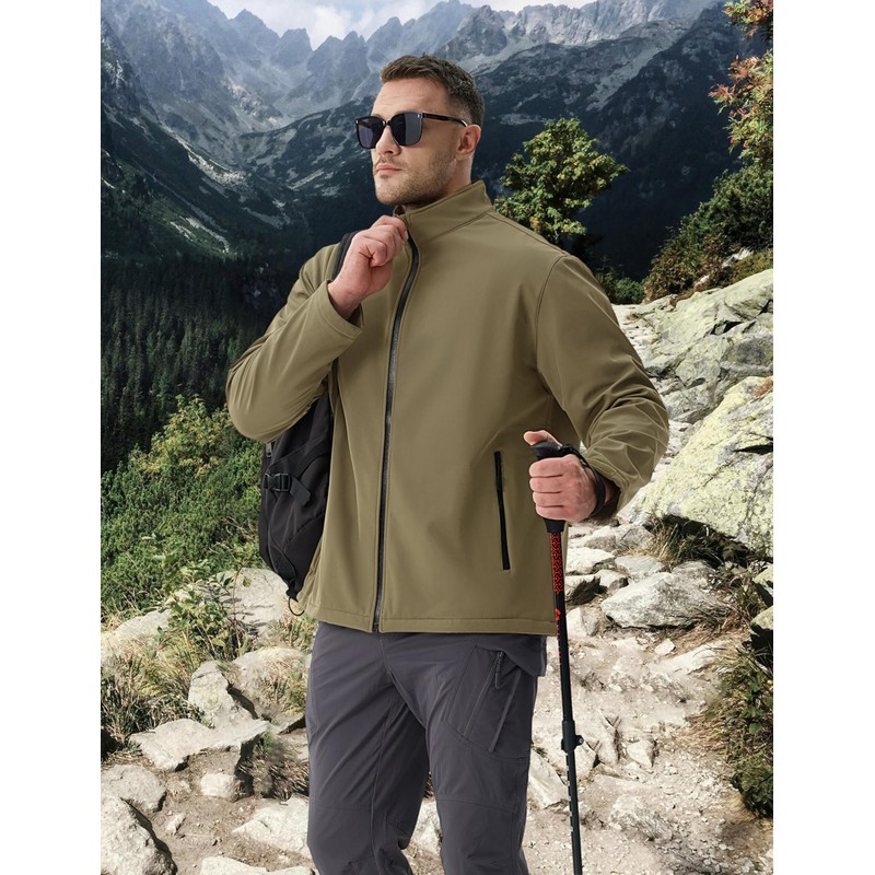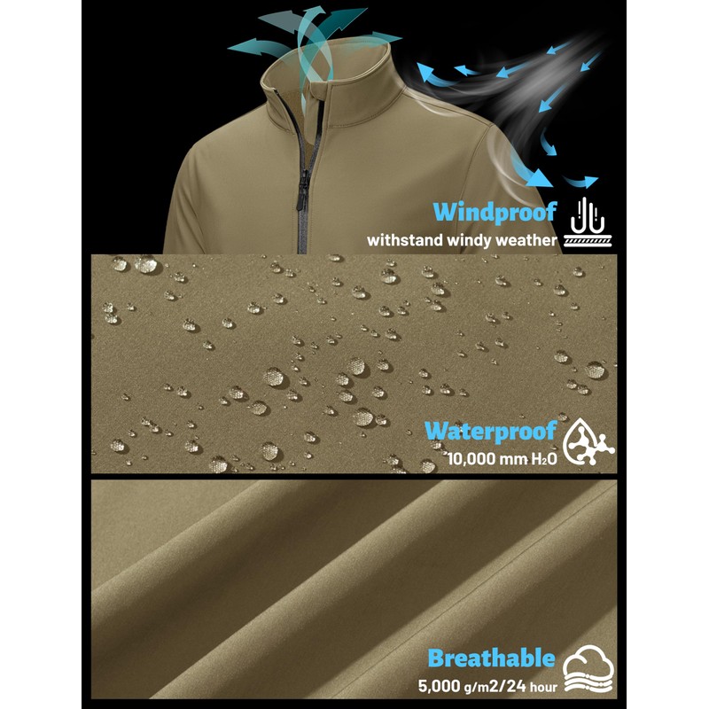 - Waterproof & Breathable——Men's softshell jacket features a high-performance waterproof fabric (10,000mm rating) and a breathable lining (5,000g/m²/24hr) to block rain while keeping you dry and comfortable.