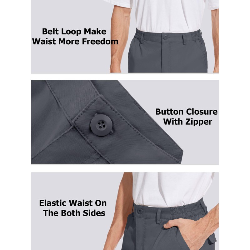 - [Elastic Waistband]: The men's work shorts have partial elastic waistband on both sides to keep the shorts tight and stylish. The firm button closure and quality zipper closure are both strong and secure.