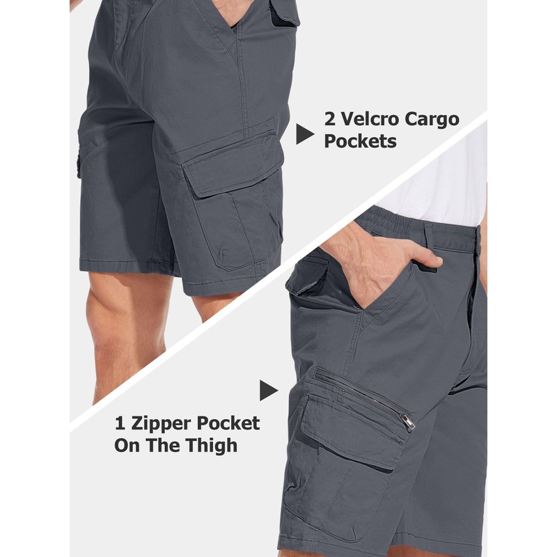 - [7 Pockets]: Cargo Shorts have 2 slanted pockets, 2 cargo pockets and 1 zipper pocket on the thigh, 2 rear pocket enough storing all items you need.