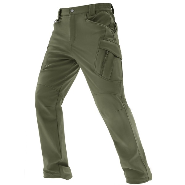 TACVASEN Men's Green Winter Tactical Cargo Pants, Water Repellent, High-Performance, Elastic, Wear Resistant, Size 40, Army Green