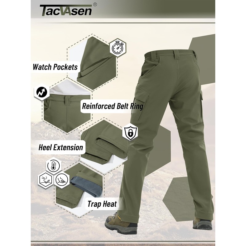 - [Reliable Outdoor Performance]-----Engineered with polyester and soft shell fabric, these tactical fleece pants excel in windproof and water resistant capabilities, ensuring reliable outdoor performance.