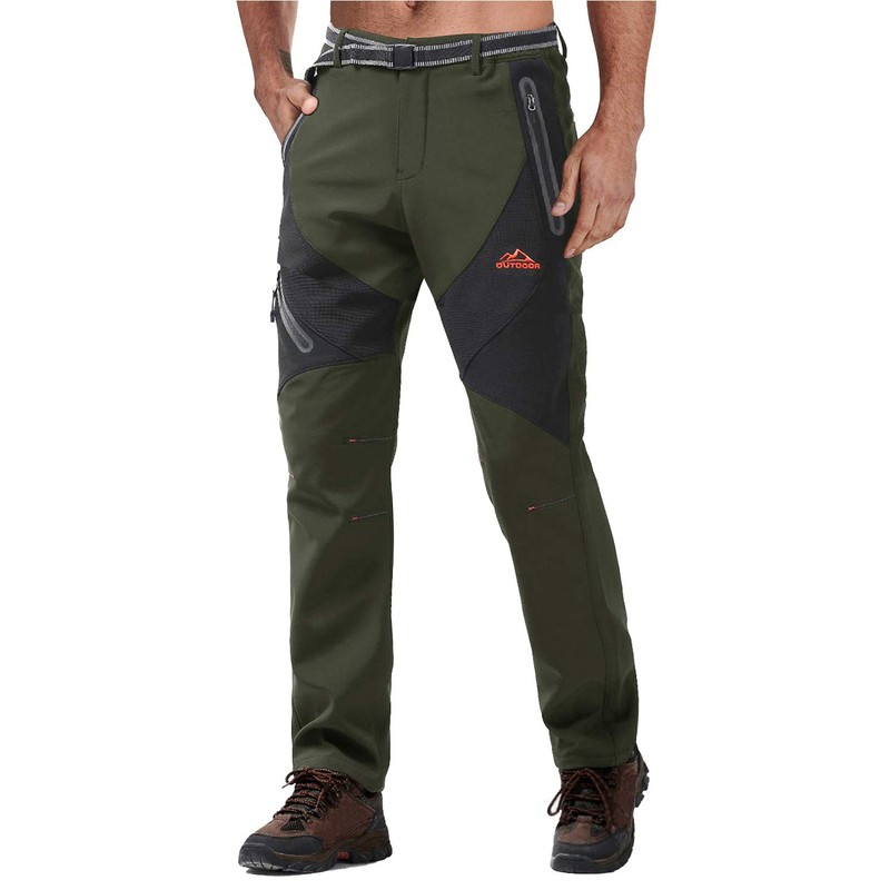TACVASEN Men's Pants-Outdoor Thicken Softshell Ski Climbing Multi Pockets, Dgrey Green, 38