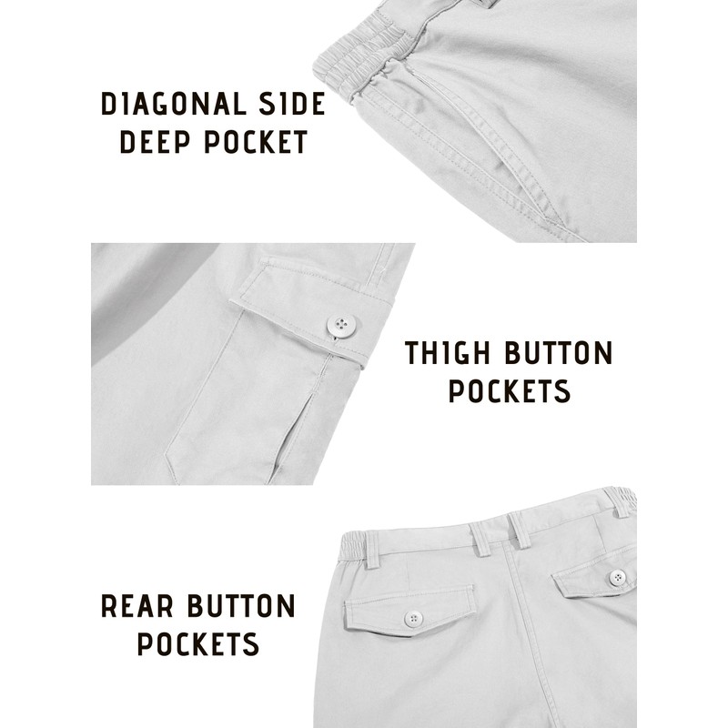 - COMFORTABLE FIT:Made of cotton and spandex, the cargo shorts are breathable, soft and stretchy, with an elastic waistband and belt loops for better performance.