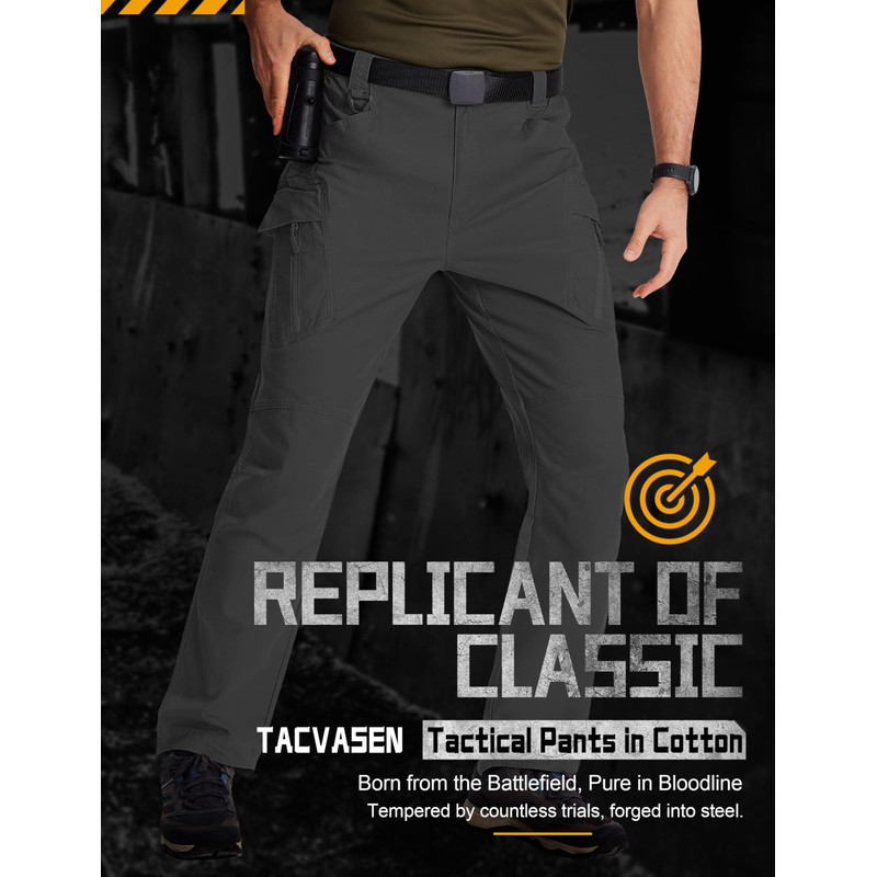 TACVASEN Mens Hiking Pants Lightweight Cotton Tactical Pants Stretch Military Cargo Pants 9 Pockets Work Pants Comfortable Workout Pants Combat Grey 32