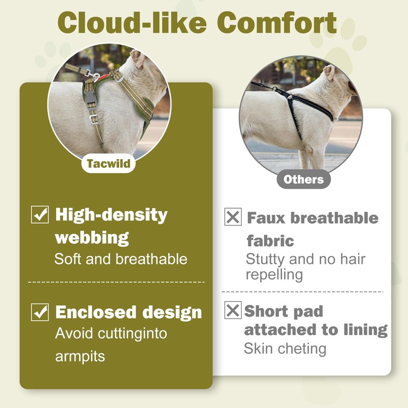 - Optimal Comfort and Fit: Equipped with four points of adjustment, the Tacwild dog harness ensures a perfect fit for any dog size. Soft breathable padding on the chest, back, and belly enhances comfort during activities, making it suitable for all levels of exercise.