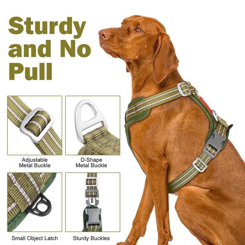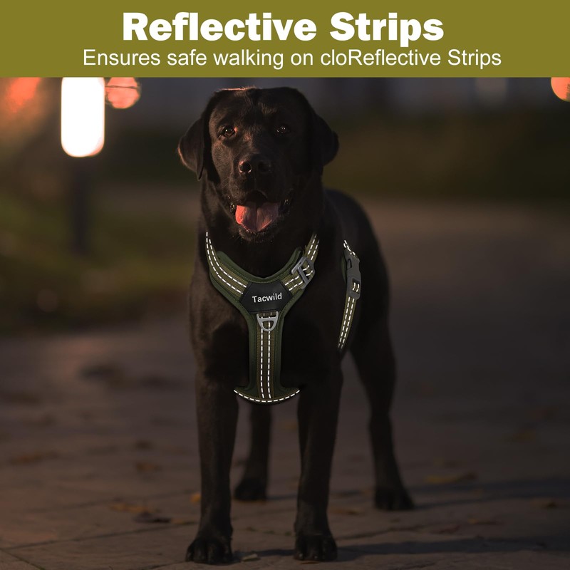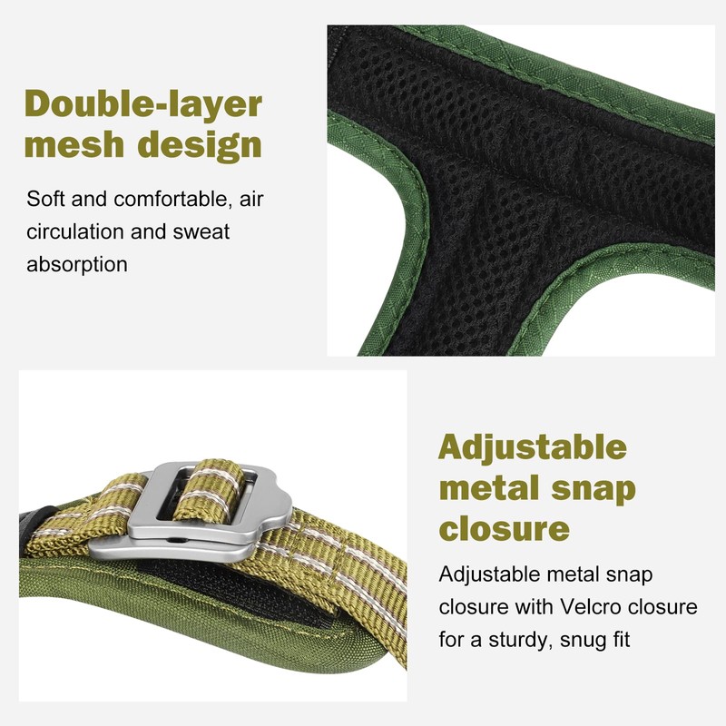 Tacwild No Pull Dog Harness - Adjustable Reflective Dog Vest with Metal Snap, Soft Breathable Mesh No Choke Puppy Harness, Easy to Put on & Take Off (Green-XL)