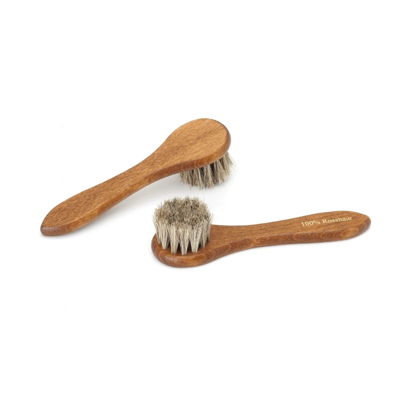 The cream brush is very suitable for applying shoe polish and shoe wax. Damage to the upper leather is avoided as horsehair is soft enough to avoid scratches.