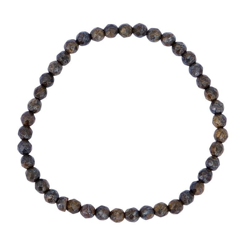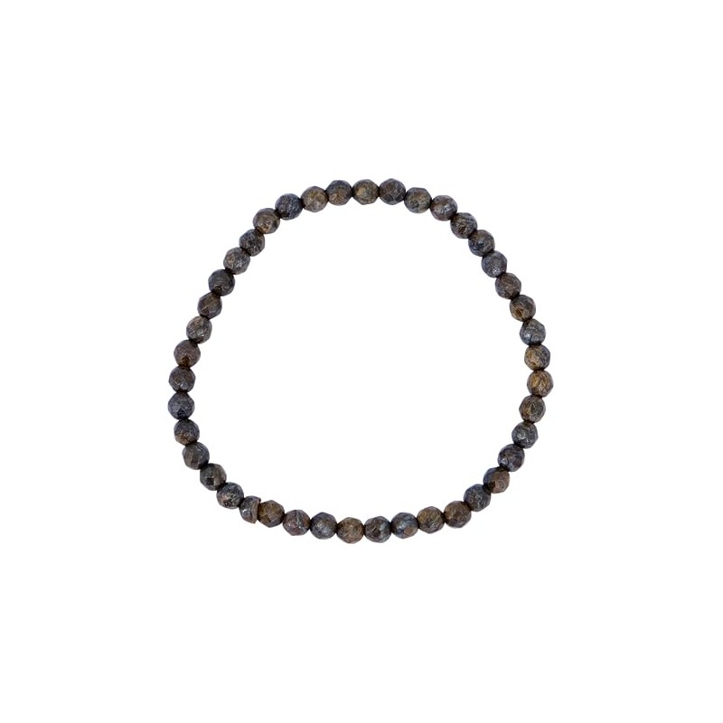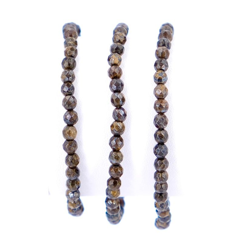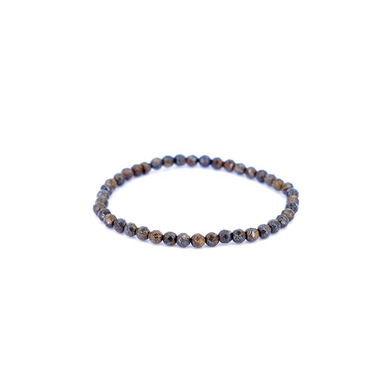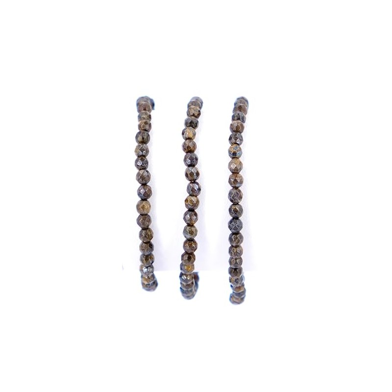 Taddart Minerals - Brown Natural Gemstone Bronzite Bracelet with 4mm Faceted Beads on Elastic Nylon Thread - Handmade, Rubber, Bronzite