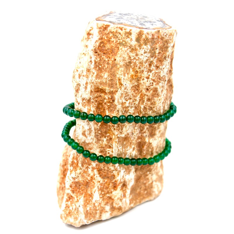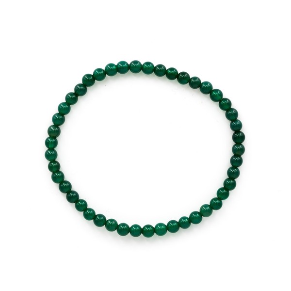 Taddart Minerals Green Natural Gemstone Agate Bracelet with 4mm Balls on Elastic Nylon Thread - Handmade, Rubber