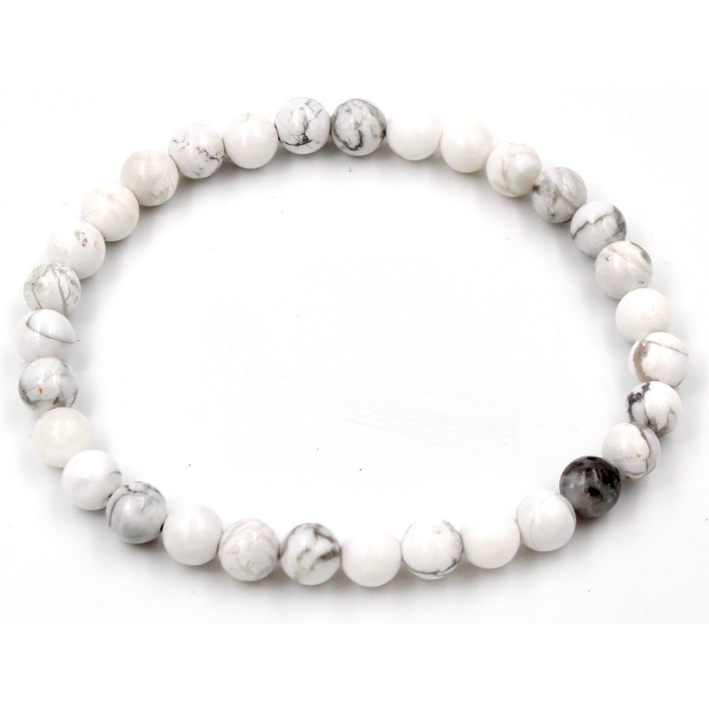 Taddart Minerals White Grey Bracelet Made from Natural Gemstone Magnesite with 6 mm Balls on Elastic Nylon Thread - Handmade, Nylon, Magnesite