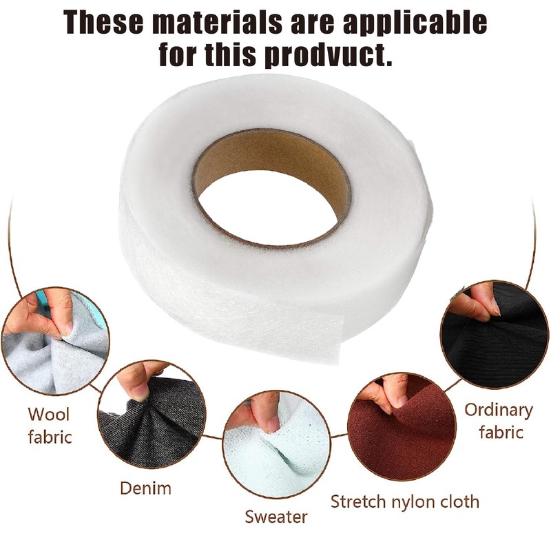 - Easy to use: for hemming, place ironing tape between the two fabrics to be hemmed. Then heat the fabric with an iron at 125-145°C for 10-15 seconds to connect the hem tape to the fabric.