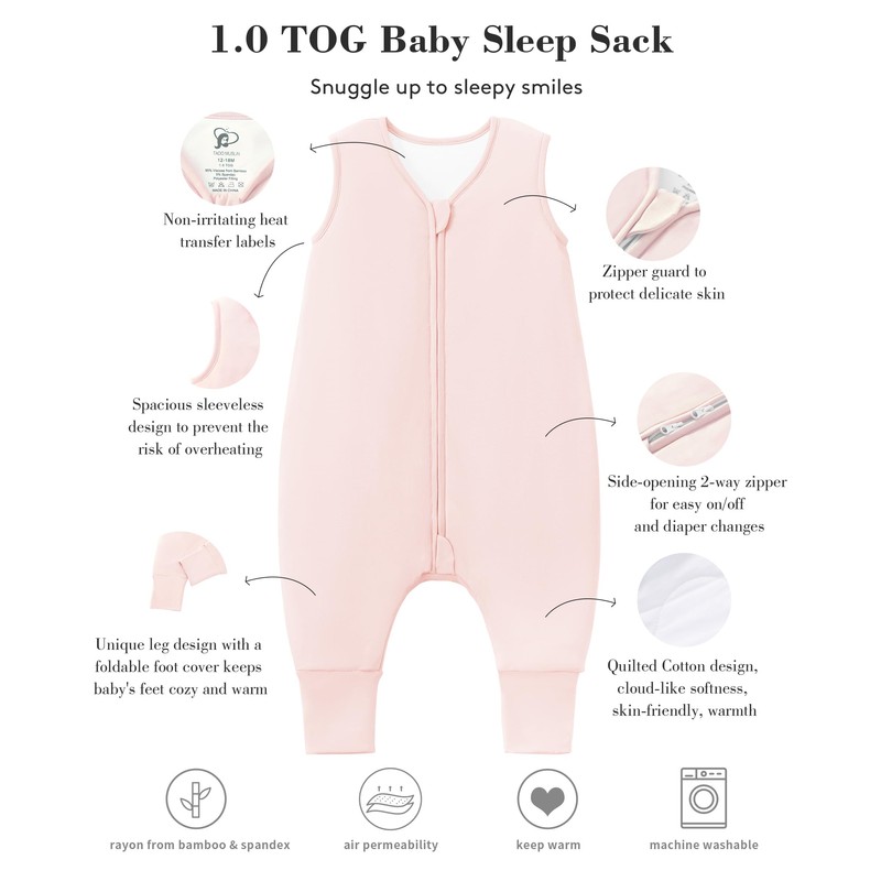 - Material & Warmth: Constructed from 95% rayon bamboo fabric with 5% spandex and filled with soft polyester, this sleep sack offers a breathable, lightweight 1.0 TOG warmth ideal for all seasons while soothing delicate baby skin