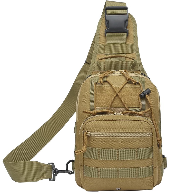 Taeku Tactical Sling Bag, Waterproof Military Crossbody Pack Chest Bag for Men Outdoor EDC Shoulder Backpack Sports Bag (Brown)