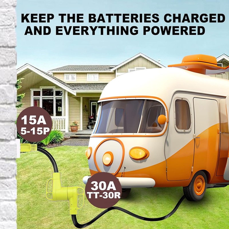 Taelakeni Temporary Power Outlet Panel RV Pedeatal Electrical Breaker Box and 30 Amp to 15 Amp 110 Volt RV Adapter Cord (Yello)