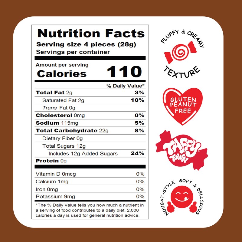 - ALLERGEN FREE: Everyone can try our delicious taffy treats. Our taffy is Made in the USA in a batch process, using the best ingredients and flavors we can find. Our factory is free of tree nuts, peanuts, and gluten. Kosher certified and we have both regular and sugar free options.