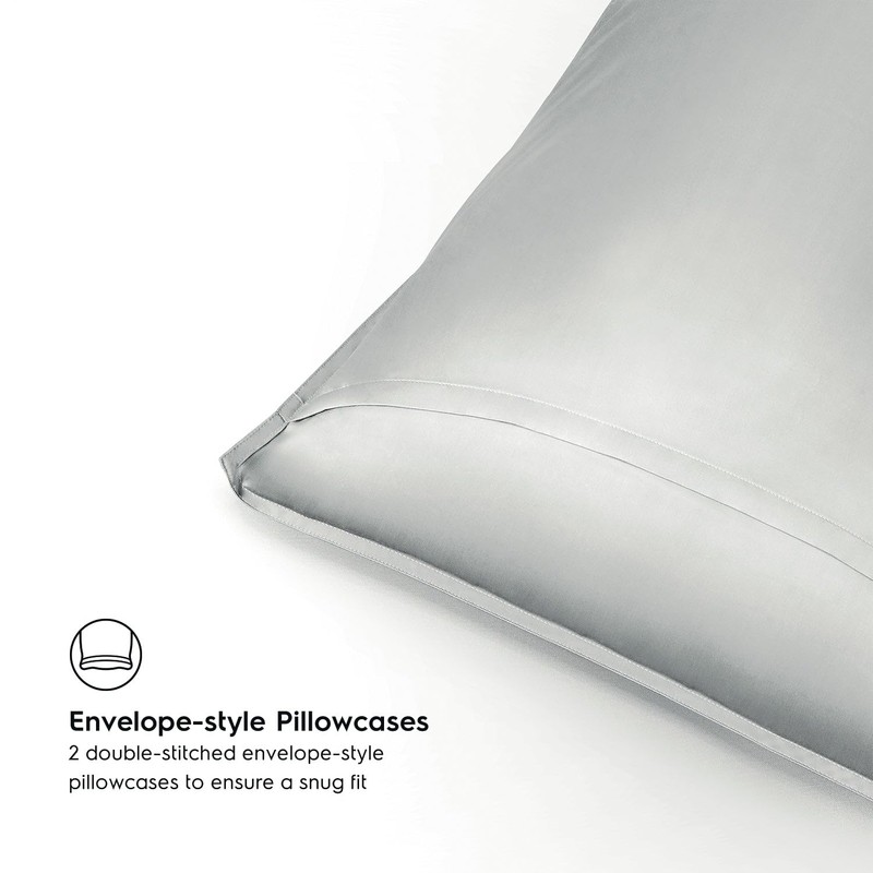 Pillow Cases Standard Size by Tafts - Pure 100% Viscose Derived from Bamboo Luxuriously Soft, Silky, Cooling, Double Stitched, Envelope Closure (2 Pillowcases, Light Grey)