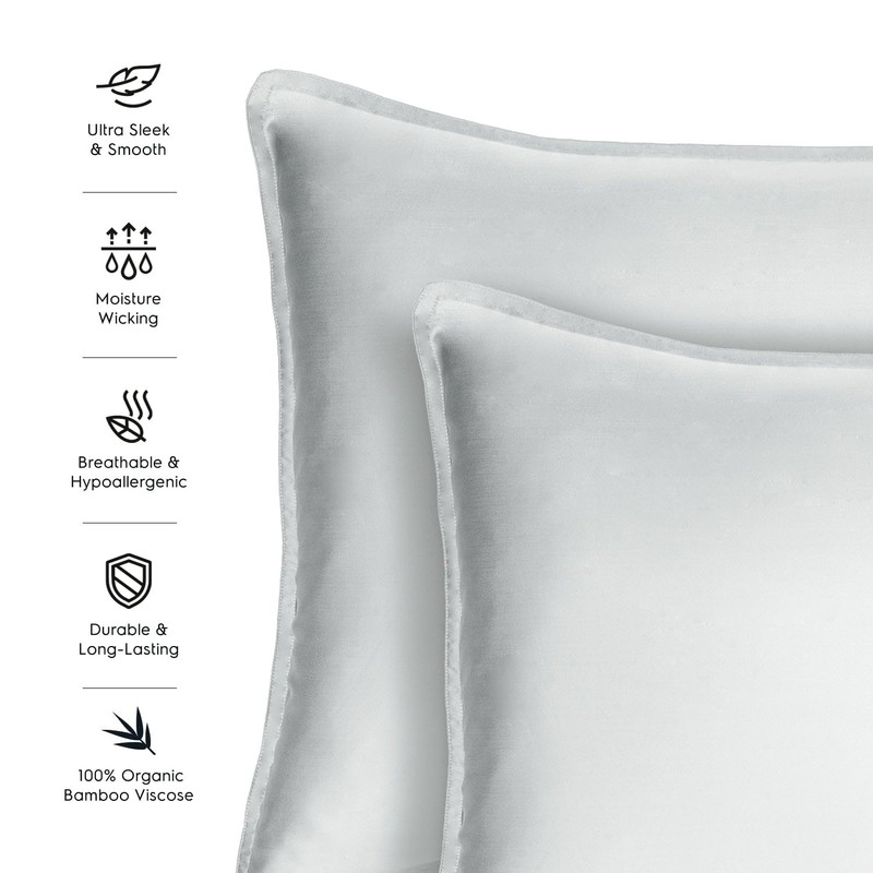 Tafts Pillow Cases Standard Size - Pure 100% Viscose Derived from Bamboo Luxuriously Soft, Silky, Cooling, Double Stitched, Envelope Closure (2 Pillowcases, Light Grey)