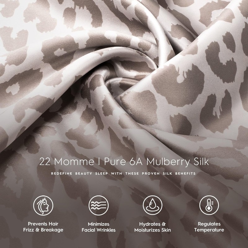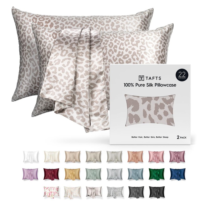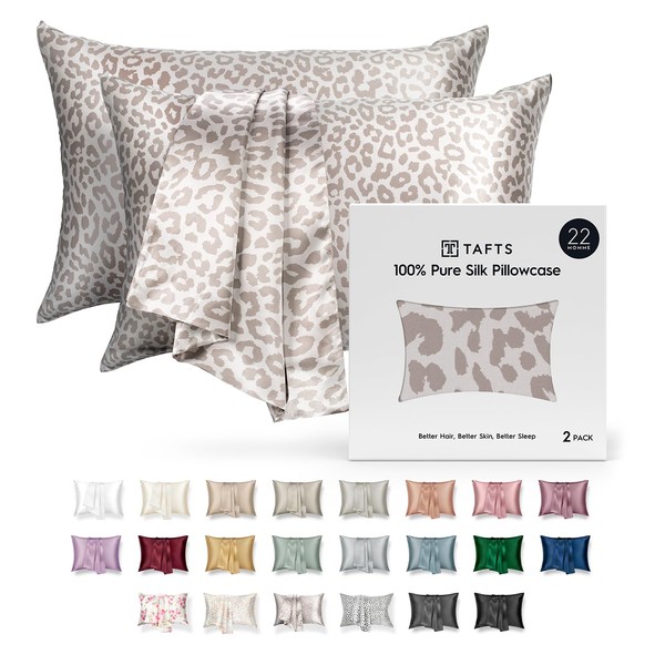 Tafts Silk Pillow Cases - 22mm 100% Pure Mulberry 6A Silk Pillowcase for Hair & Skin with Envelope Closure, Cooling, Natural, Organic, Double Sided Silk Pillow Case (Leopard, Queen 20x30, 2pc)