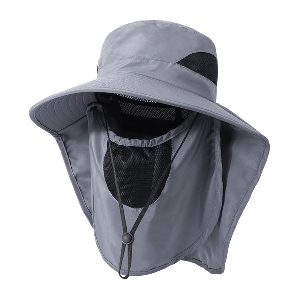 TAGVO Men's Sun Hats, UV Protection Summer Hat with Wide Brim, Safari Hat, Foldable Hiking Hat, Waterproof Fishing Hats, Boonie Hats with Chin Strap, gray
