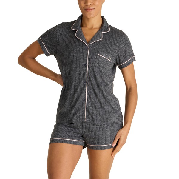 Tahari Women's Notch Collar Top and Shorts Pajama Set, Charcoal Heather Grey