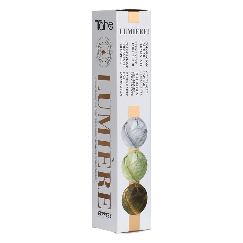 Lumière Express Hair Dye by Tahe. Permanent Coloration A professional oxidation hair dye with low ammonia content, offering effective coverage and long-lasting color. Main Benefits: ✔ 100% Gray Hair Coverage ✔ Perfect, Intense, and Long-Lasting Color ✔ Wide Range of Shades ✔ Low Ammonia Content ✔ Exceptional Shine and High Hair Protection ✔ Maximum Softness and Nourishment ✔ More Product for the Same Price