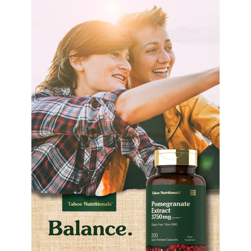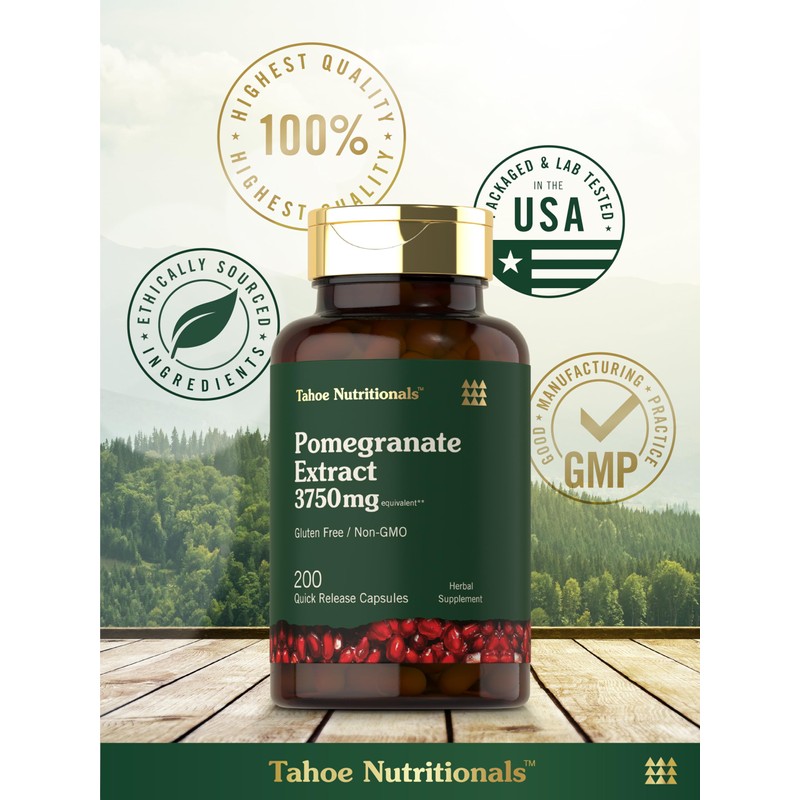 Tahoe Nutritionals Pomegranate Extract | 200 Capsules | 3750 mg | Non-GMO, Gluten Free Supplement