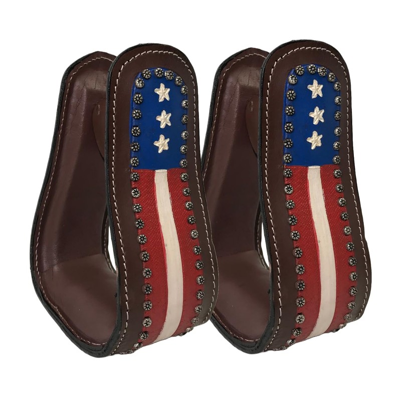 Tahoe Tack Patriotic American Flag Leather Adult Western Stirrups
