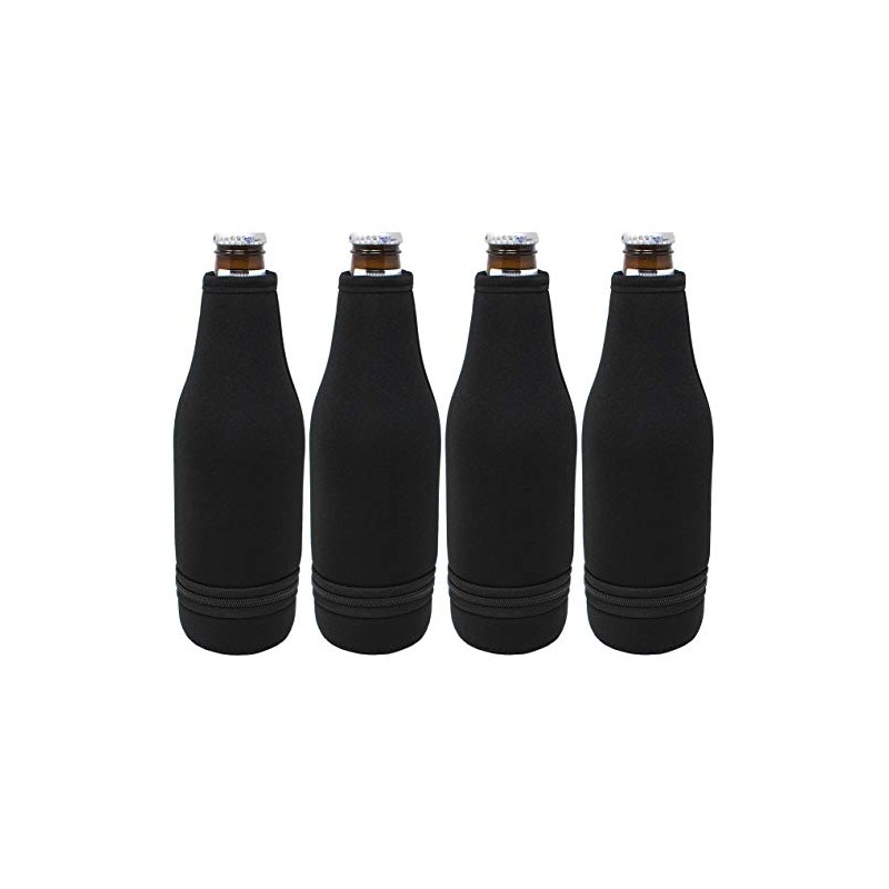 TahoeBay 12 Beer Bottle Sleeves - Easy-On Bottom Zipper - Extra Thick Neoprene Blank Drink Cooler (Black, 12)