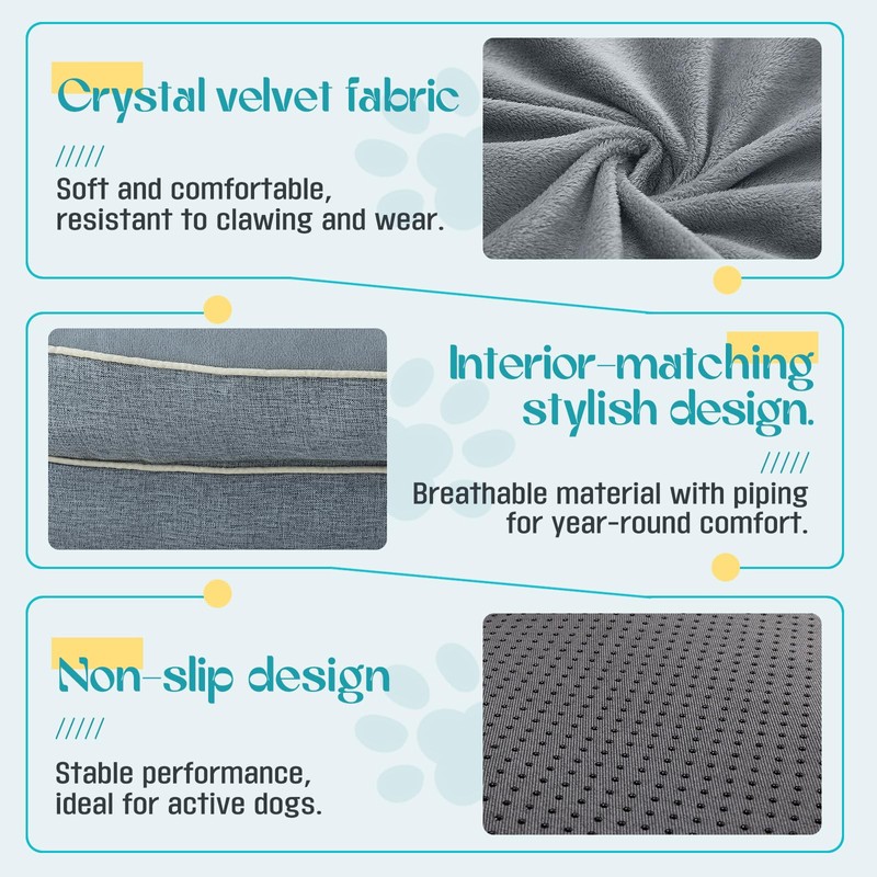 - Easy to Clean:This dog sofa features a detachable cover with a zipper, making it easy to remove and clean. It supports machine washing and low-temperature tumble drying. Note: Do not machine wash the memory foam pad