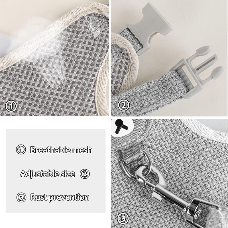 - Wide application: the adjustable rabbit harness is suitable for rabbits, cats, hamsters, rats, mice and other small animals for daily walking, jogging, training and for all outdoor activities, and provide small animals a good travel experience.