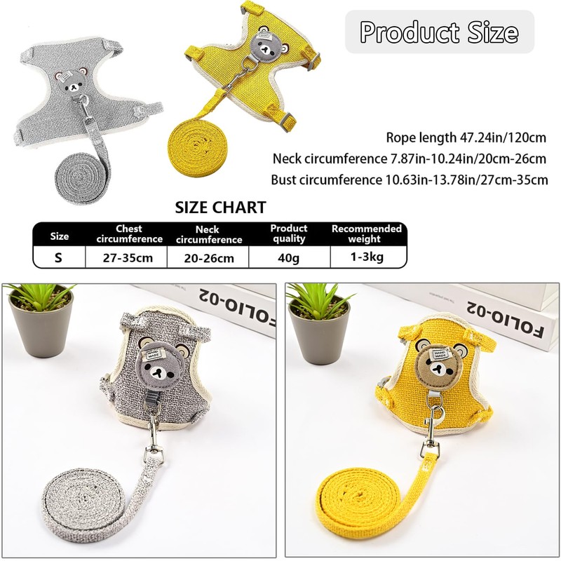 - Perfect design: the vest-like design can distribute the pressure of the traction belt evenly across the chest and shoulders and thus avoid choking hazard or neck fatigue, designed with bear pattern, it looks cute and stylish and makes your pet look more beautiful and attractive.