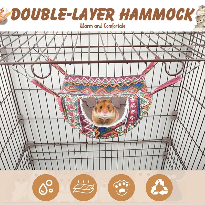 - Function: Comfortable and adorable hammock, is very suitable for small pets to sleep or play, which can help keep small pets warm and cosy. Place it in any corner of your pet's cage or activity area to create a cozy and spacious retreat.