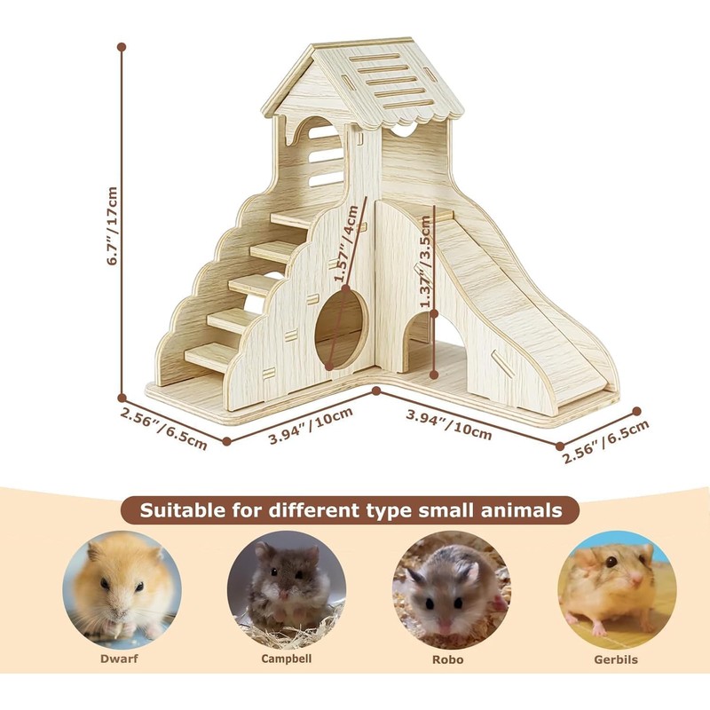 - 【Eco-safe Wood + Hamster Cage Integration】 Crafted with chemical-free birch wood, sterilized and rounded-edge polished for claw safety. Natural wood grain blends seamlessly with hamster cage bedding while providing durable chewing surfaces for dental health maintenance.