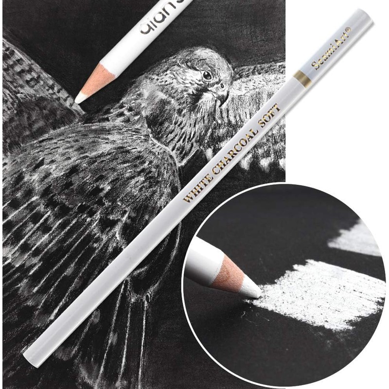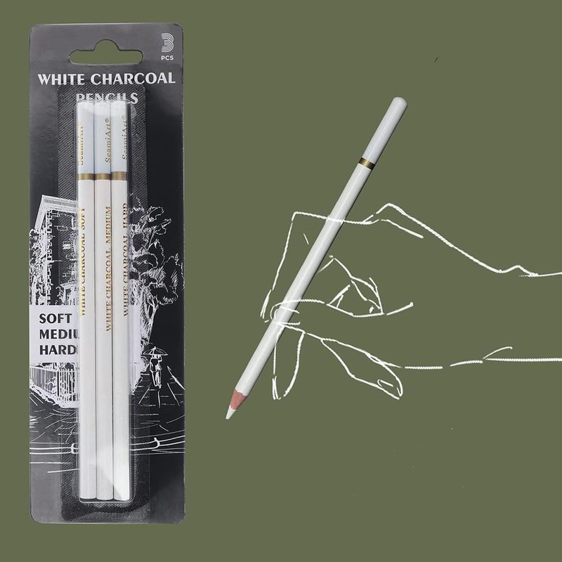 TAIHE White Highlight Colouring Pen, White Charcoal Pencil Set, 3 Pieces White Charcoal Pencils Professional Sketching Highlight Pen Sketching Highlight Painting Pens for Art Painting Accessories