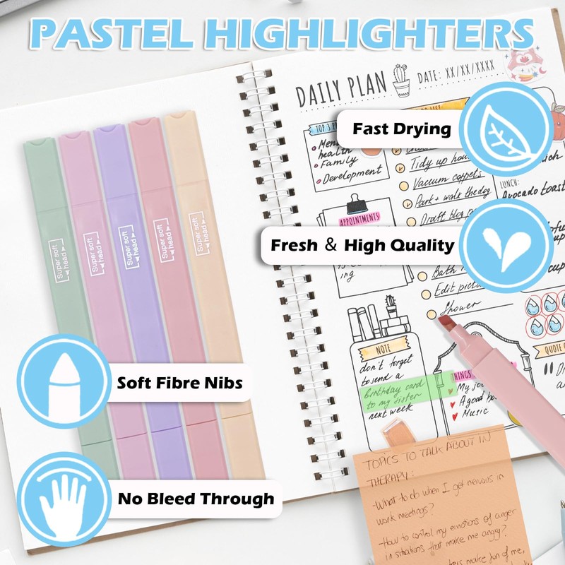 - 【Dual-Tip Design】All 6 highlighters pastel are designed with dual tips - a round tip and a wide tip - allowing you to switch freely between wide and narrow lines to meet your diverse needs. The round tip is not only suitable for doodling but also for writing fonts; while the wide tip is more inclined for doodling, drawing, and making key markings.