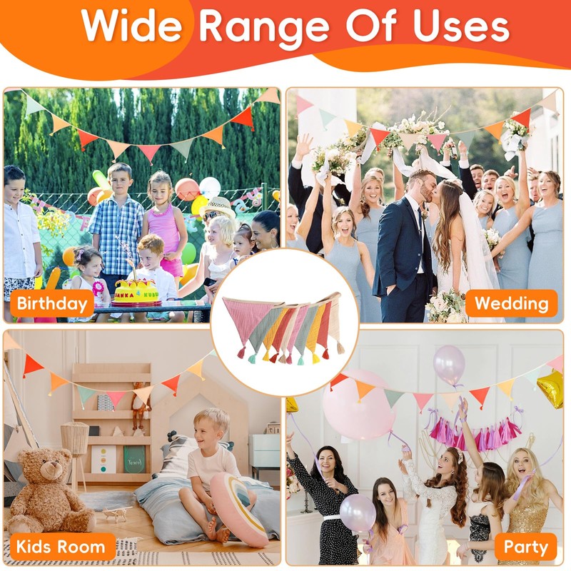 - Many uses: the garland fabric is versatile and is perfect as a decoration for weddings, birthdays, family and friends parties, Christmas, children's rooms and classrooms. It can be hung on walls, windows or other places, adding beautiful colors and cheerful atmosphere to the surroundings.