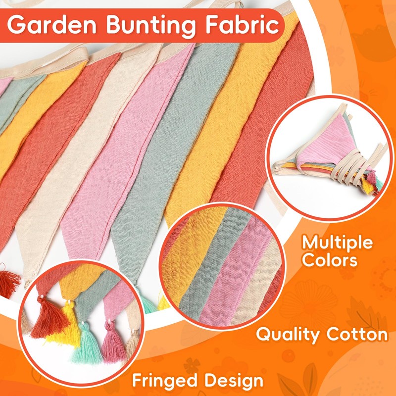 - High-quality cotton: Our colourful bunting is made of carefully selected, tear-resistant cotton and crepe fabric. It is soft and comfortable, colourful and not monotonous, washable and reusable. This material is very easy to care for, so you don't have to worry about it being dirty and difficult to clean.