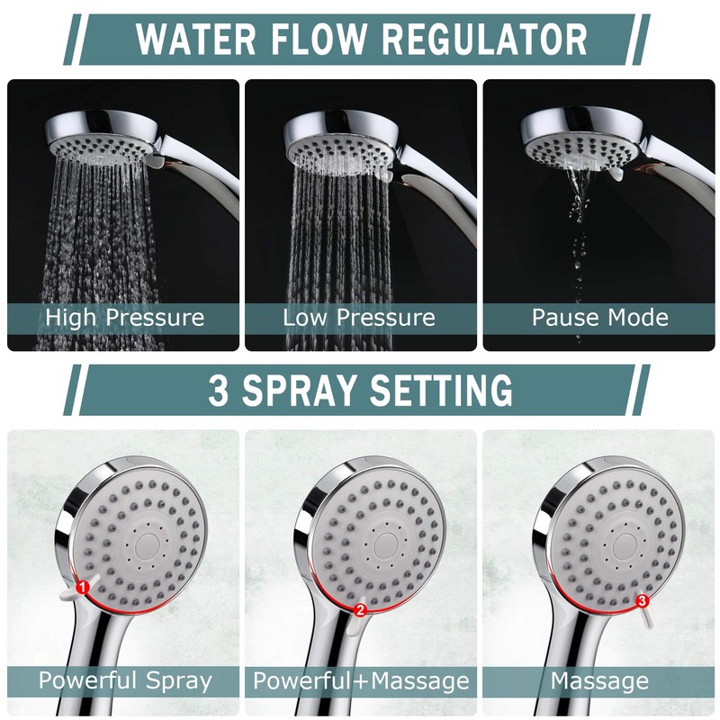 - [Handheld shower]: Chrome Plated make shower head more beautiful and exquisite. 3 mode shower mode and 60'' Long shower hose make you more convenient. It is ideal for Bathing Kids, Washing Pets and Cleaning applications. Its nozzle adopt TPR and High level ABS.