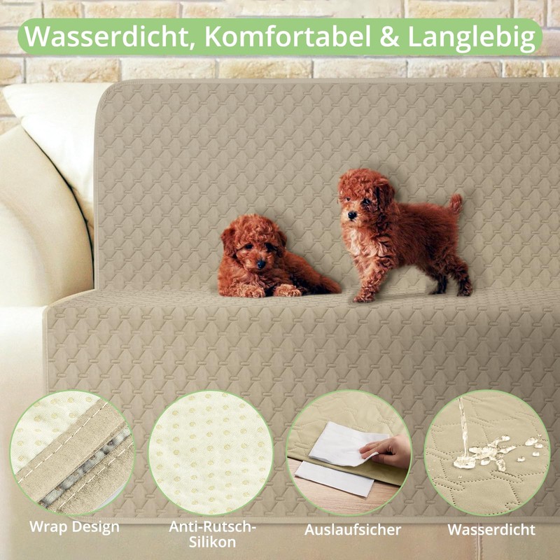 TAIKURA Waterproof Dog Blanket, Dog Blankets, Non-Slip Dog Mat, Robust Cat Blanket, Reusable, Can Be Used as Protection for Sofa, Bed, Car Seat, Washing Machine Washable (Khaki, 137 x 208 cm)